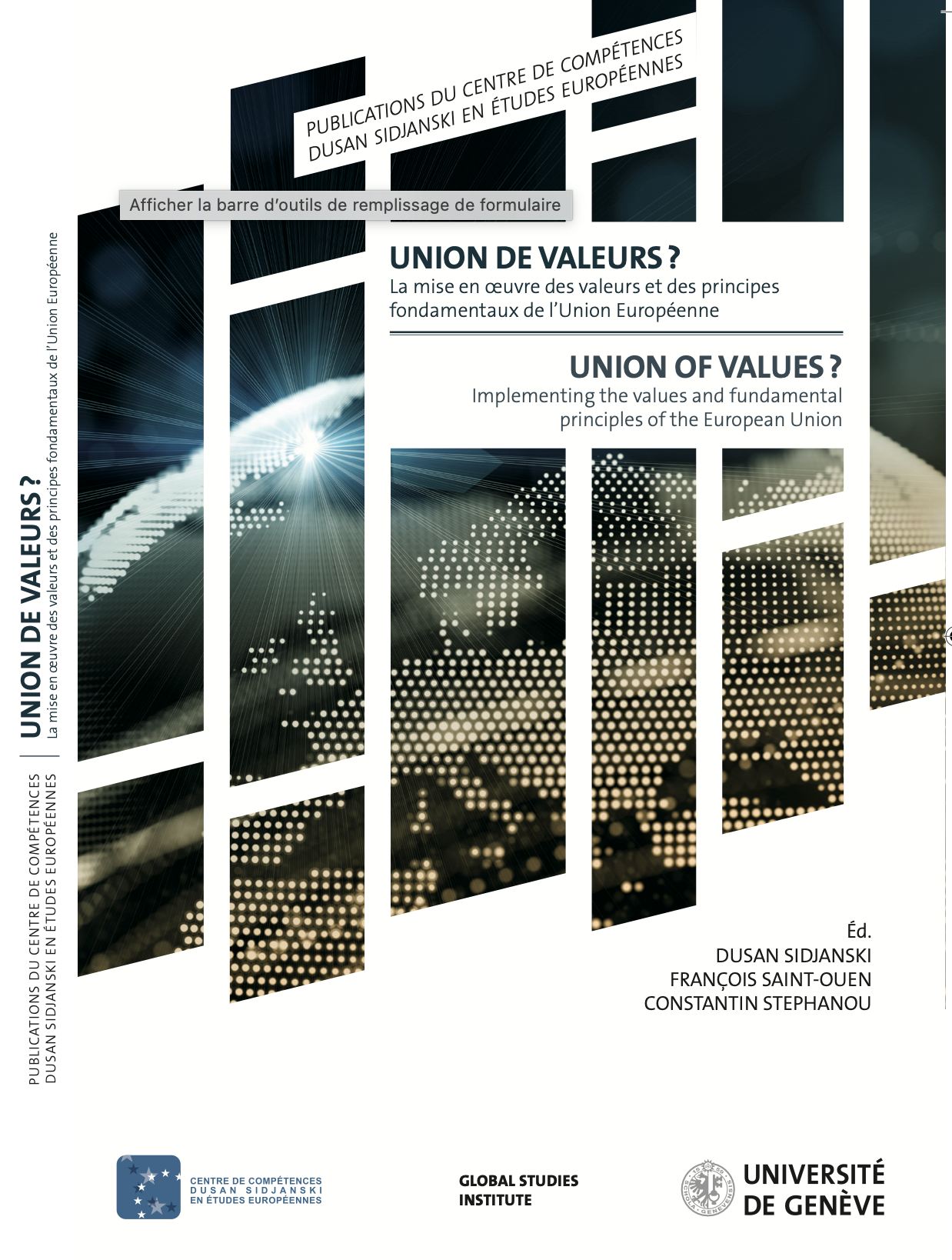 « Conclusion : La mise en oeuvre des valeurs et principes fondateurs de l'Union européenne », in Union de valeurs?, (éds : D. Sidjanski, C. Stephanou, F. Saint-Ouen), Univeristé de Genève, Centre de Compétences Dusan Sidjanski en Etudes Européennes, 2018, pp. 197-213.