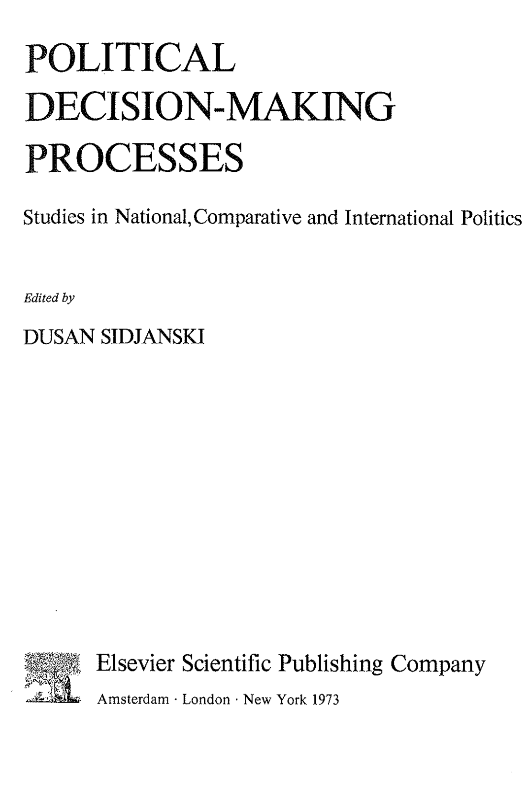 « Introduction : decision-making approaches » , in SIDJANSKI, D. (dir.), Political decision-making processes, Amsterdam et al., Elsevier, 1973, pp. 1-18.