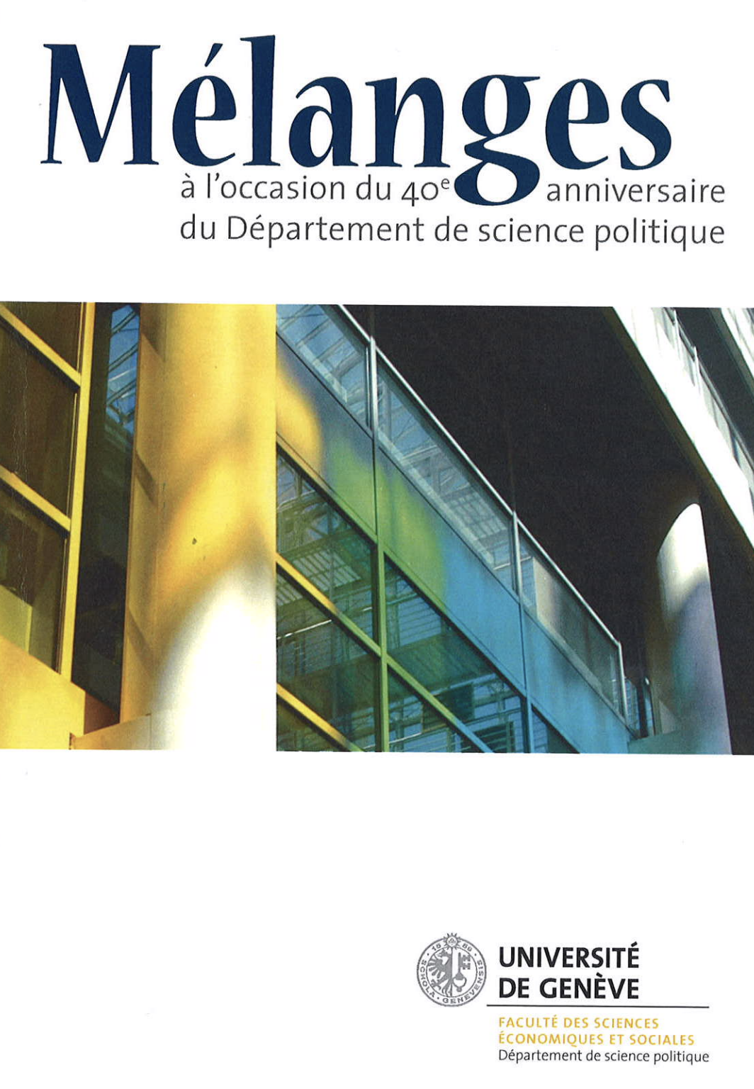 « Origines et avenir du Département de Science politique», in Mélanges à l’occasion du 40e anniversaire du Département de science politique, Genève, Université de Genève, Faculté des Sciences Economiques et Sociales, Département de science politique, mai 2010, pp. 7-16.