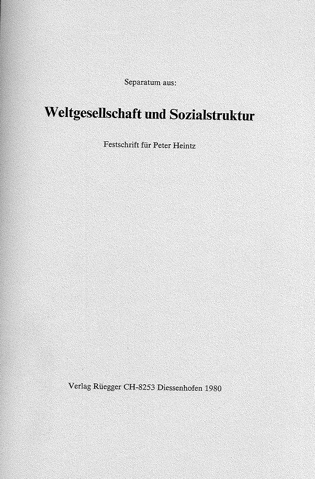 « Die Rolle des politischen Regimes in den regionalen Gemeinschaften » , (en coll. avec H.K. Jacobson), in HISCHIER, G., LEVY, R. et al. (dir), Weltgesellschaft und Sozialstruktur: Festschrift zum 60. Geburtstag von Peter Heintz, Diessenhofen, Verlag Rüegger, 1980, pp. 91-104.