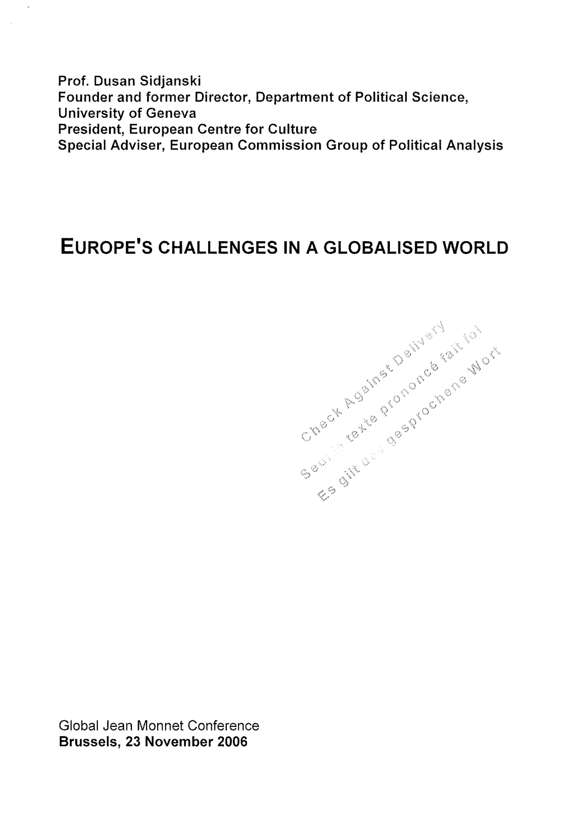 « Integration of Persons in an International Context and EU Citizenship » , in Les défis de l’Europe dans un monde globalisé - Conférence Mondiale Jean Monnet, Bruxelles, Commission européenne, nov. 2006, pp. 96-102.