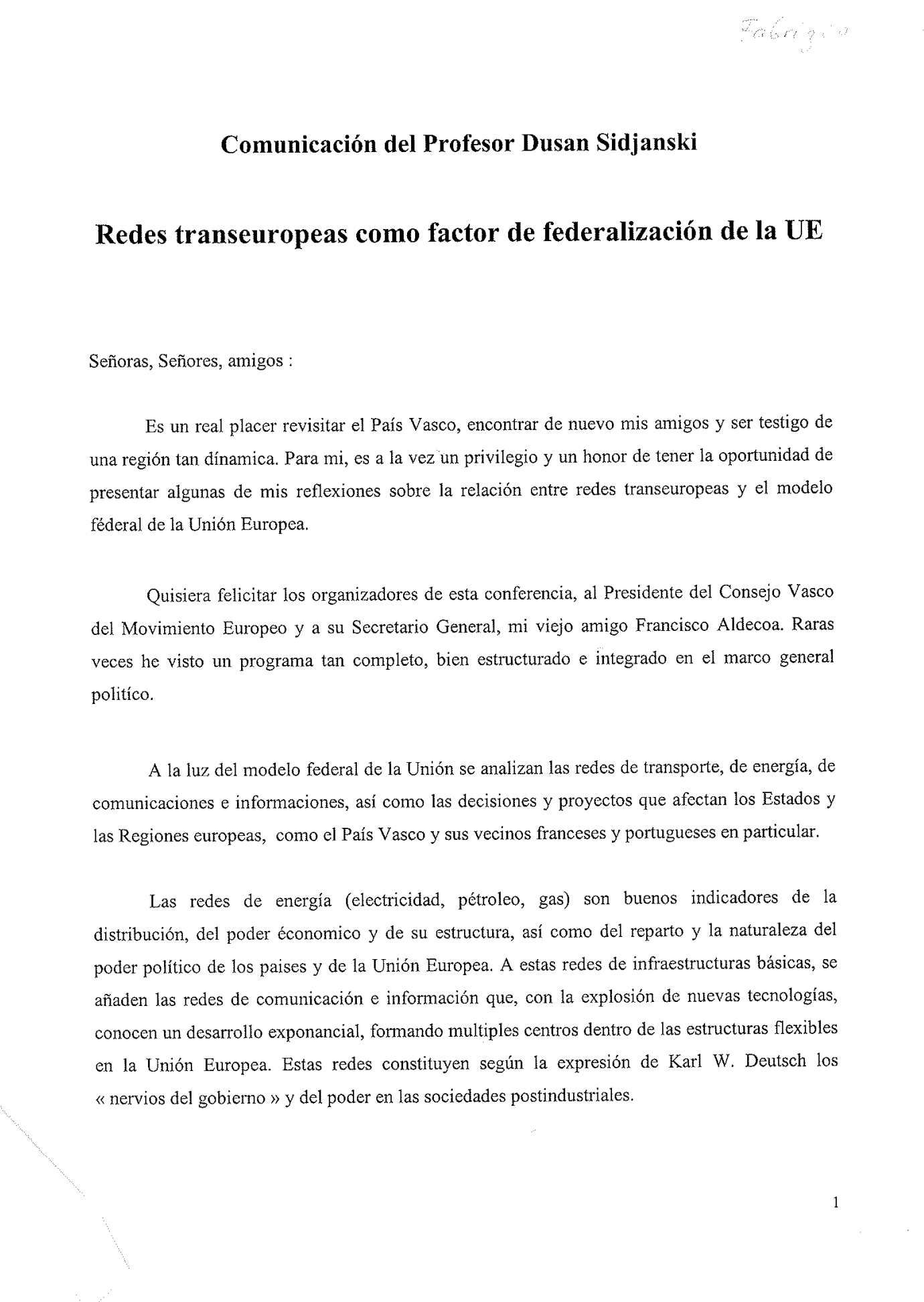 « Redes transeuropeas como factor de federalización de la UE » , in CONSEJO VASCO DEL MOVIMIENTO EUROPEO, Las redes transeuropeas (RTE) y el Modelo federal de la EU. Une visión desde Euskadi, Madrid et Barcelona, Marcial Pons, 2001, pp. 43-59.