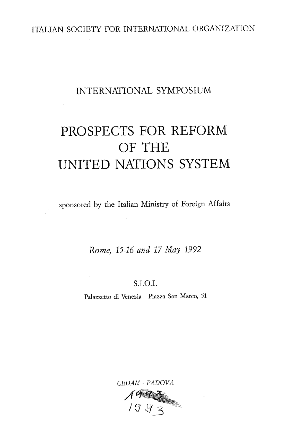 « The Decision-Making Process of the Security Council of the United Nations » , in GORI, U. (dir.), Prospects for Reform of the United Nations System, Padoue, SIOI - CEDAM, 1993, pp. 443-453.