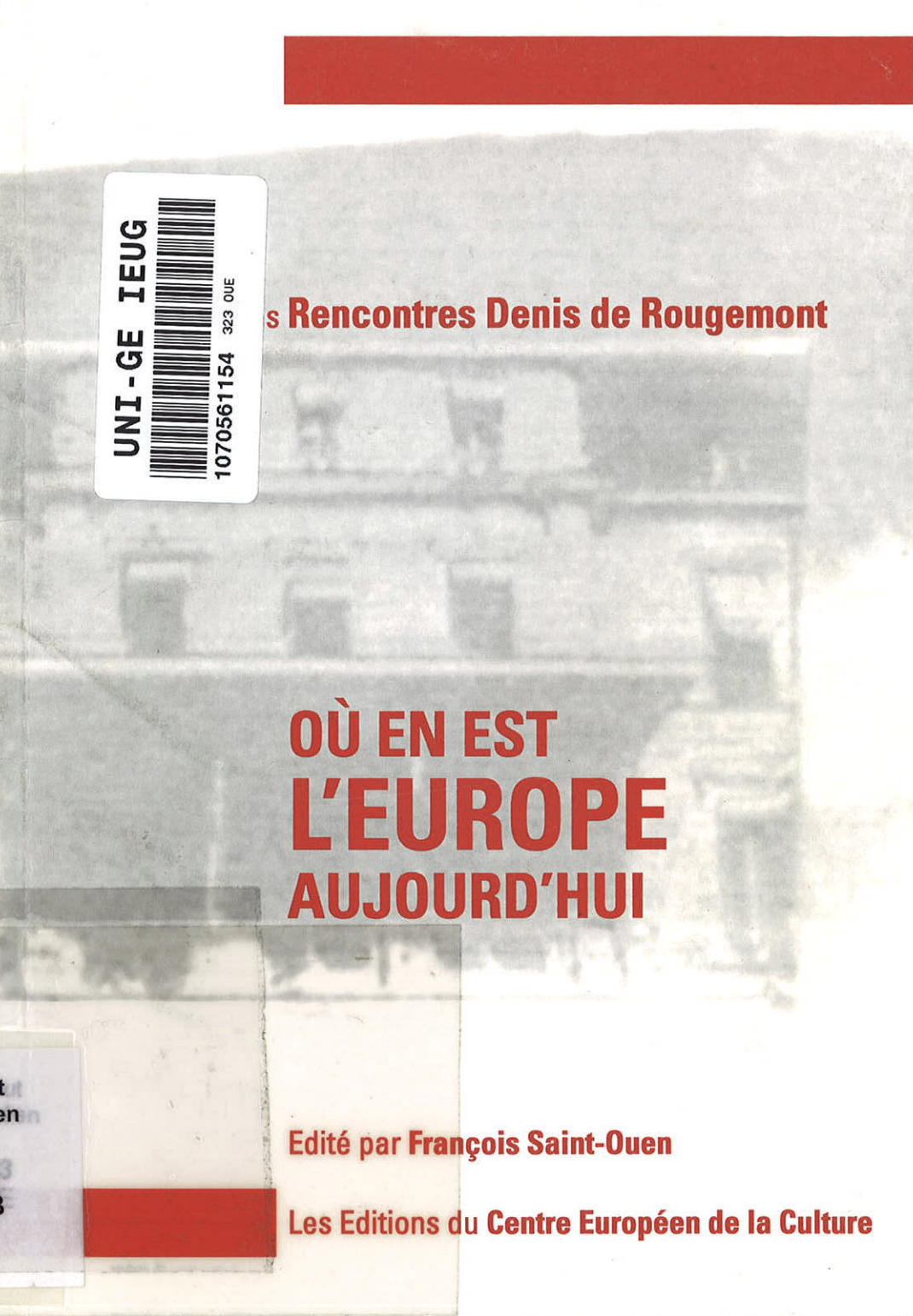 « Denis de Rougemont, Fédéralisme européen » , in Où en est l'Europe aujourd'hui. Actes du colloque. Premières Rencontres Denis de Rougemont, 29 avril 1994, Genève, Editions du CEC, 1994.