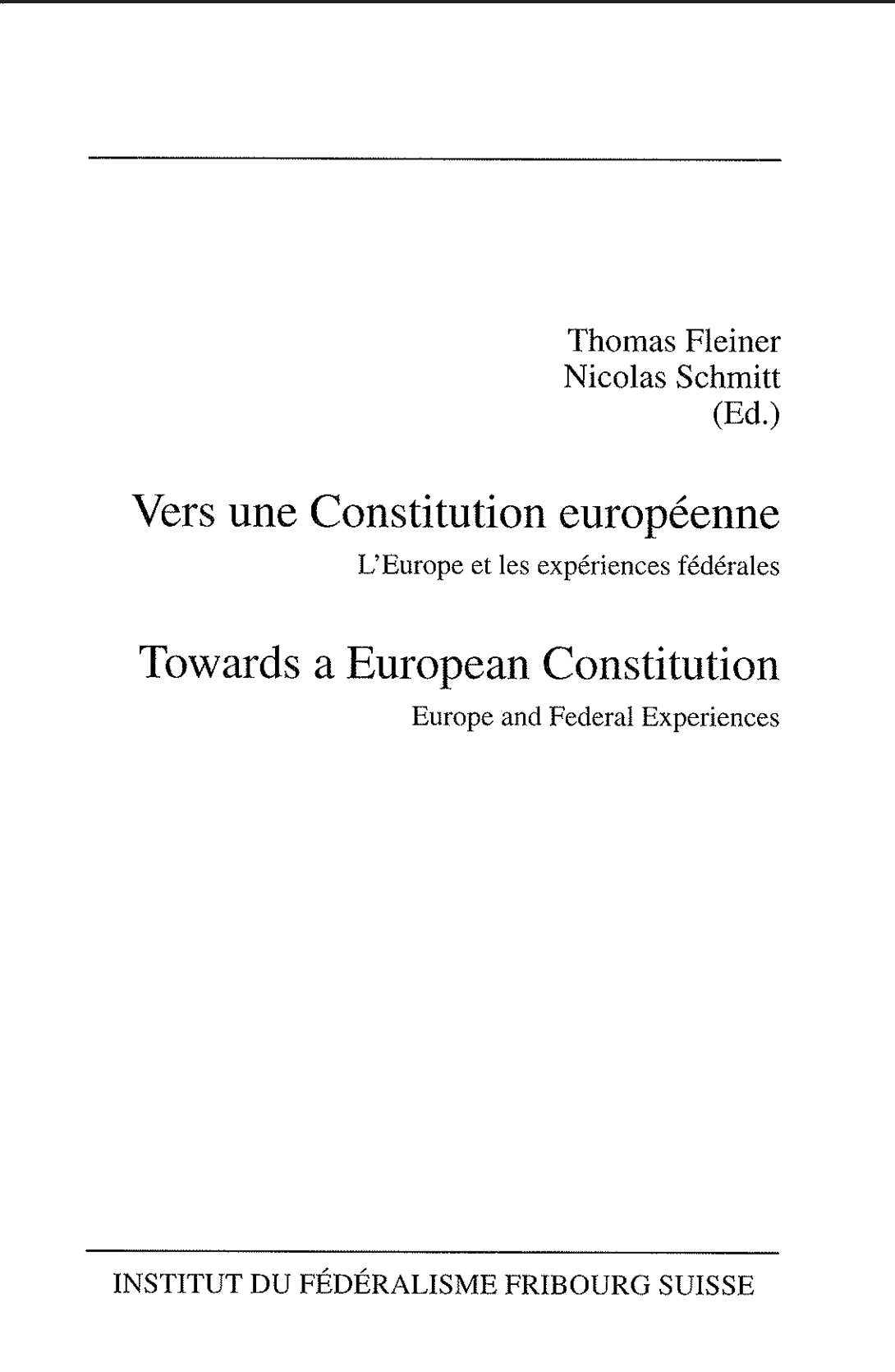« La nouvelle ère du fédéralisme » , in FLEINER, T. et SCHMITT, N. (dir.), Vers une Constitution européenne. L’Europe et les expériences fédérales. Towards a European Constitution. Europe and Federal Experiences, Institut du Fédéralisme Fribourg Suisse, 1996, pp. 45-58.