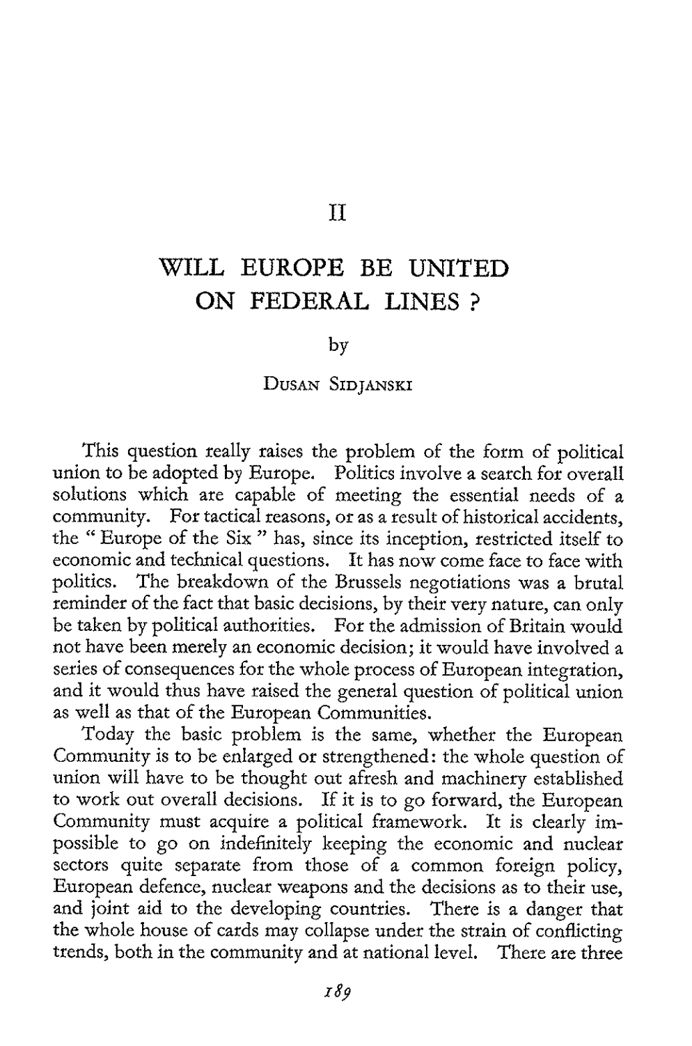 « Will Europe be United on Federal Lines? » , in DE JOUVENEL, B. (dir.), Futuribles II Studies in Conjecture, Genève, Droz, 1965, pp. 189-246.