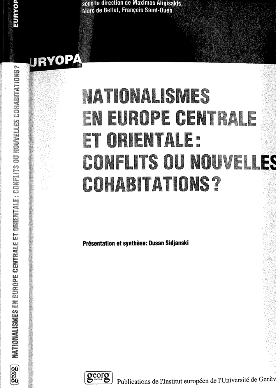 « Synthèse et essai d'interprétation: Etat-nation et nouveau fédéralisme européen » , in SIDJANSKI, D., ALIGISAKIS, M., DE BELLET, M. et SAINT-OUEN, F. (dir.), Nationalismes en Europe centrale et orientale: conflits ou nouvelles cohabitations, Genève, Georg (Coll. Euryopa), IEUG, 1997, pp. 289-315.