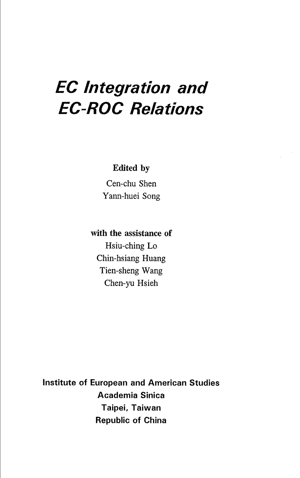 « The State of the European Union », in SHEN, C.-C. et SONG, Y.-H. (dir.), EC Integration and EC-ROC Relations, Taipei, Institute of European and American Studies, Academia Sinica, 1995, pp. 39-68.