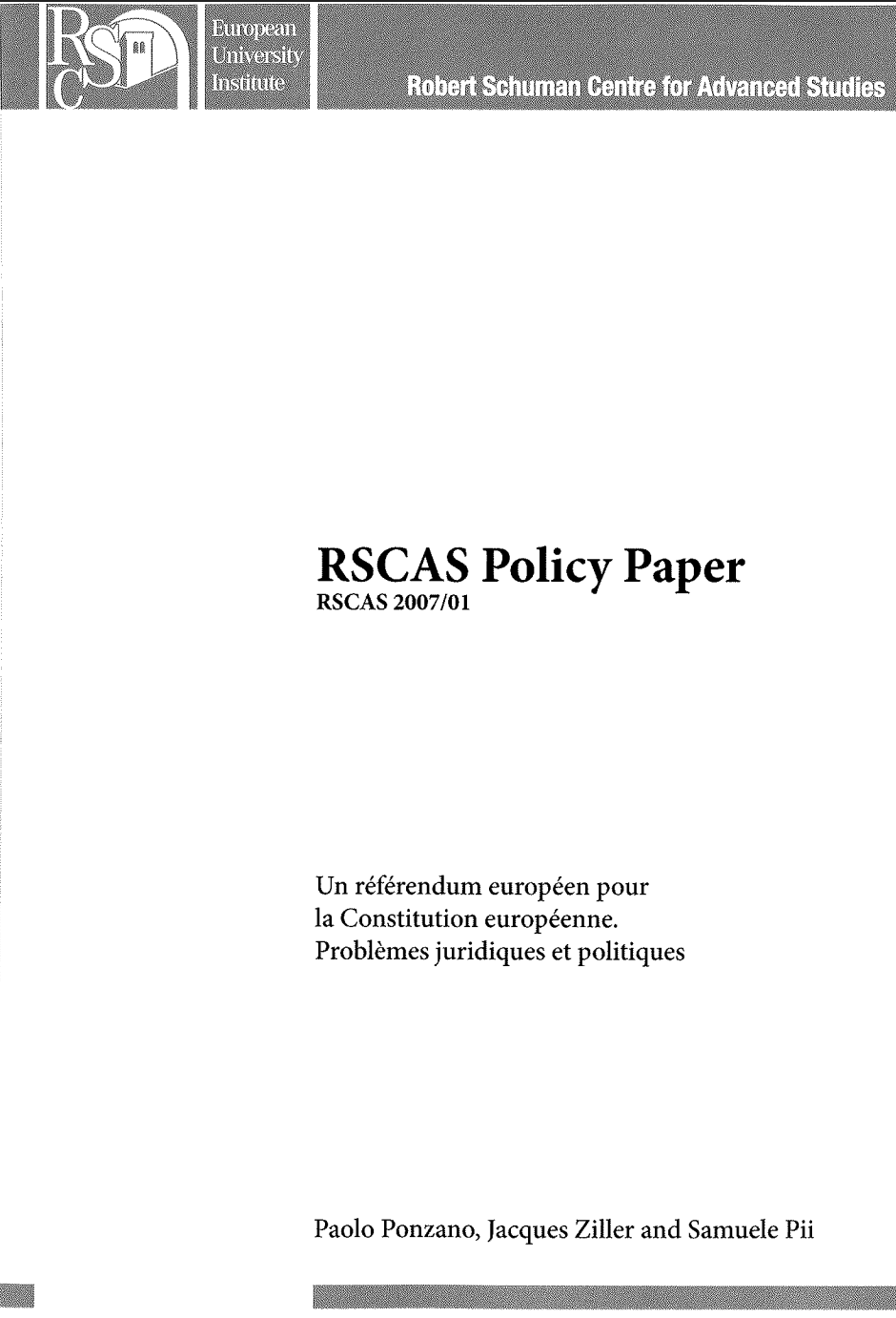 « Problématique générale d’un référendum européen » , in PONZANO, P., ZILLER, J. et PII, S. (dir.), Un référendum européen pour la Constitution européenne. Problèmes juridiques et politiques, Robert Schuman Centre for Advanced Studies (RSCAS) Policy Paper 2007/01, pp. 8-12.