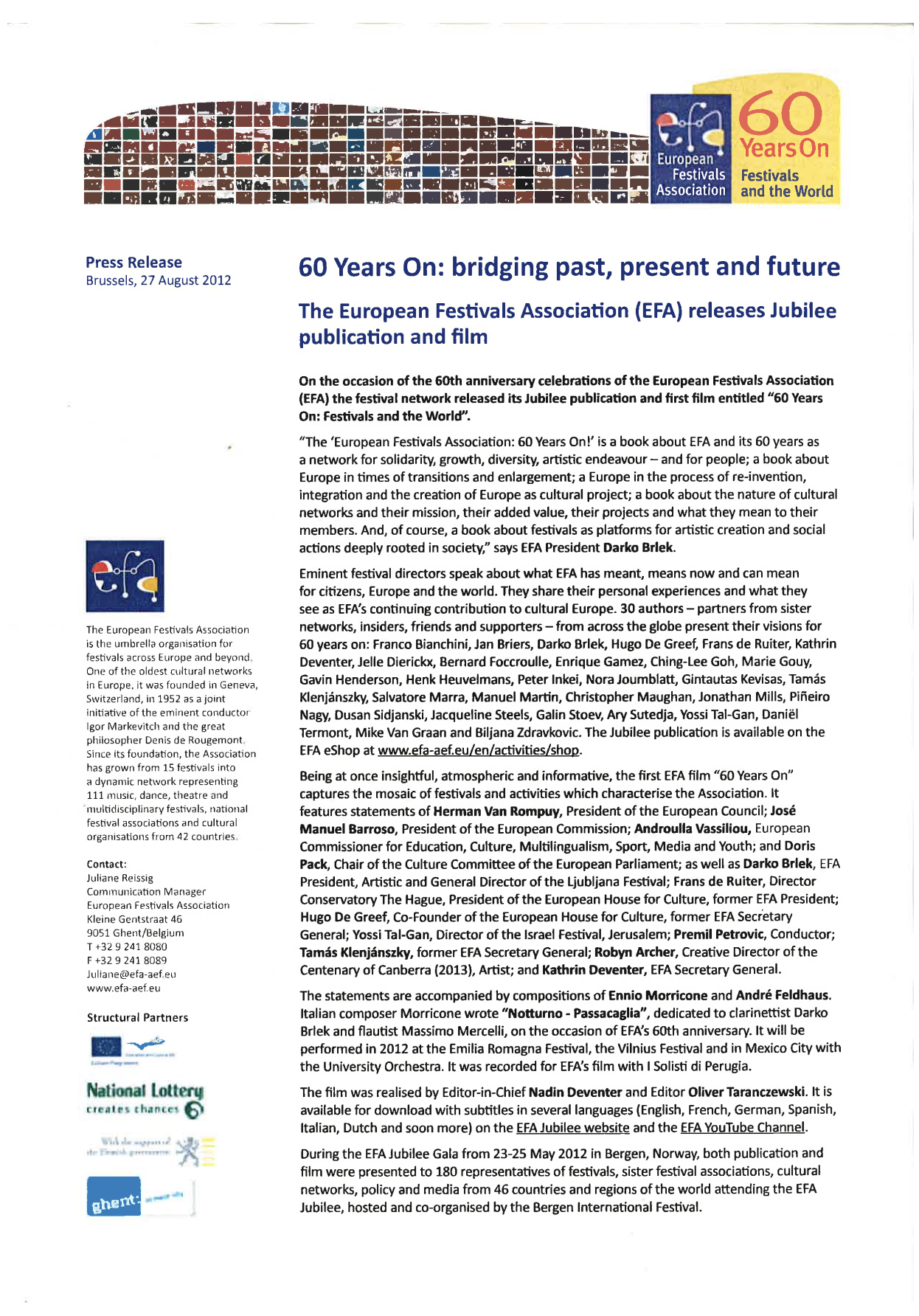 “The music of experience”, in 60 Years On: Festivals and the World, European Festivals Association Jubilee Publication, 2012, pp. 13-15.