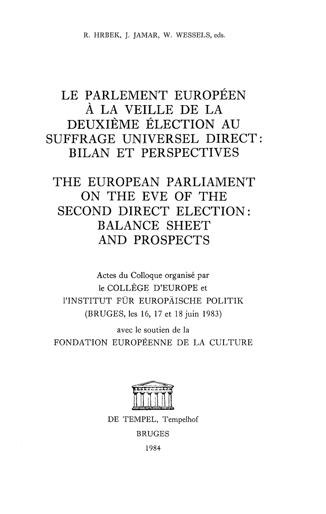 « Le Parlement européen et les groupes d'intérêt » in HRBEK, R., JAMAR, J. et WESSELS, W. (dir.), Le Parlement Européen à la veille de la deuxième élection au suffrage universel direct : bilan et perspectives, Bruges, Collège d'Europe, 1984, pp. 520-553.