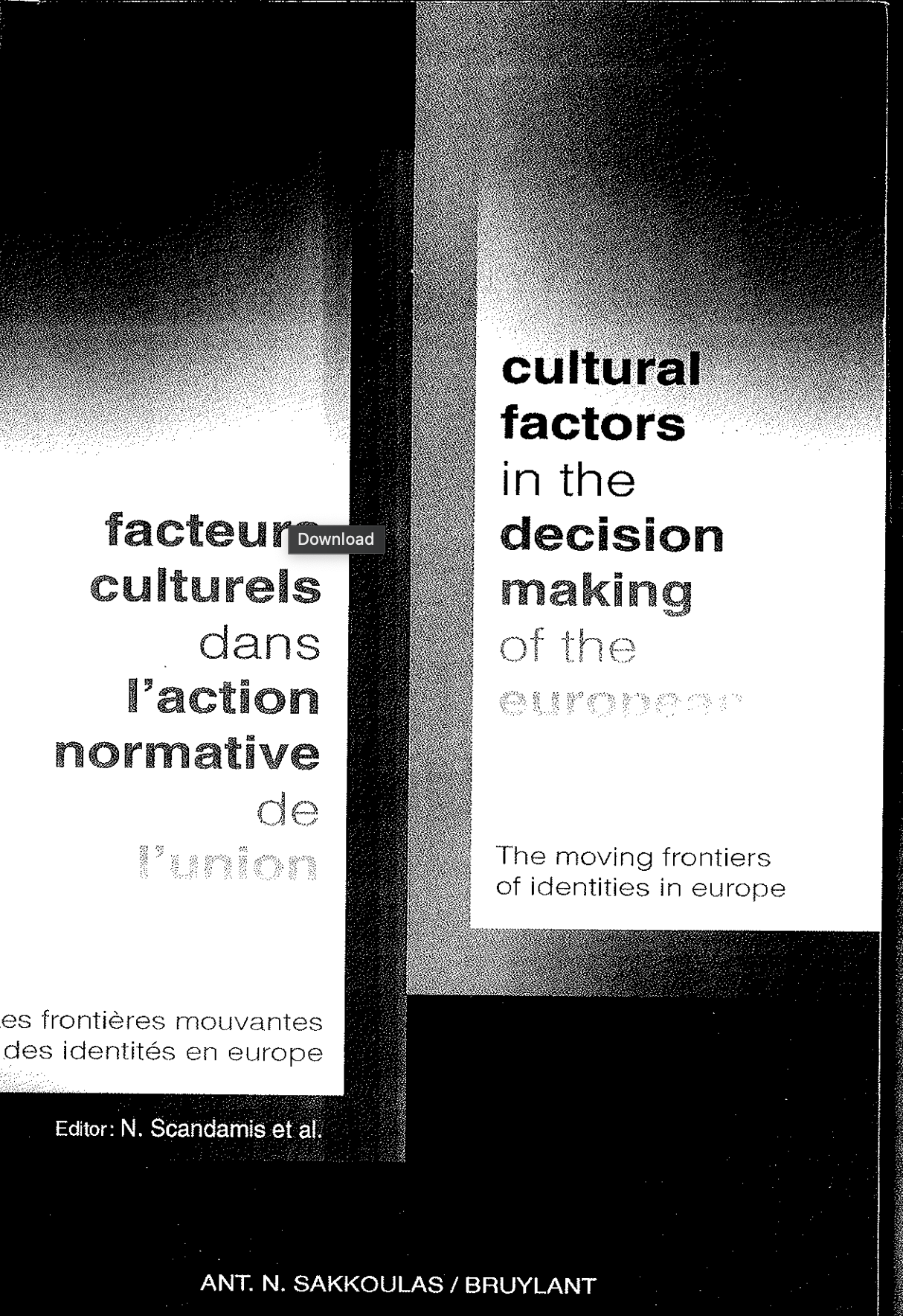 « Le nouveau fédéralisme européen » , in SCANDAMIS, N. et al. (dir.), Facteurs culturels dans l’action normative de l’Union européenne. Les frontières mouvantes des identités en Europe, Athènes, Sakkoulas/Bruylant, 2002, pp. 69-95.