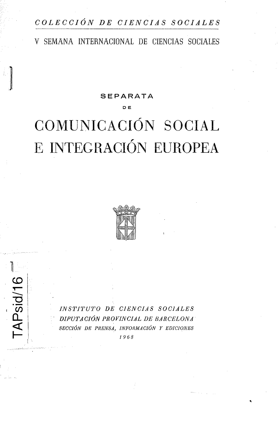 « Les partis politiques et l’intégration européenne » , in Comunicación social e integración europea, Barcelona, Instituto de Ciencias sociales, 1968, pp. 387-402.