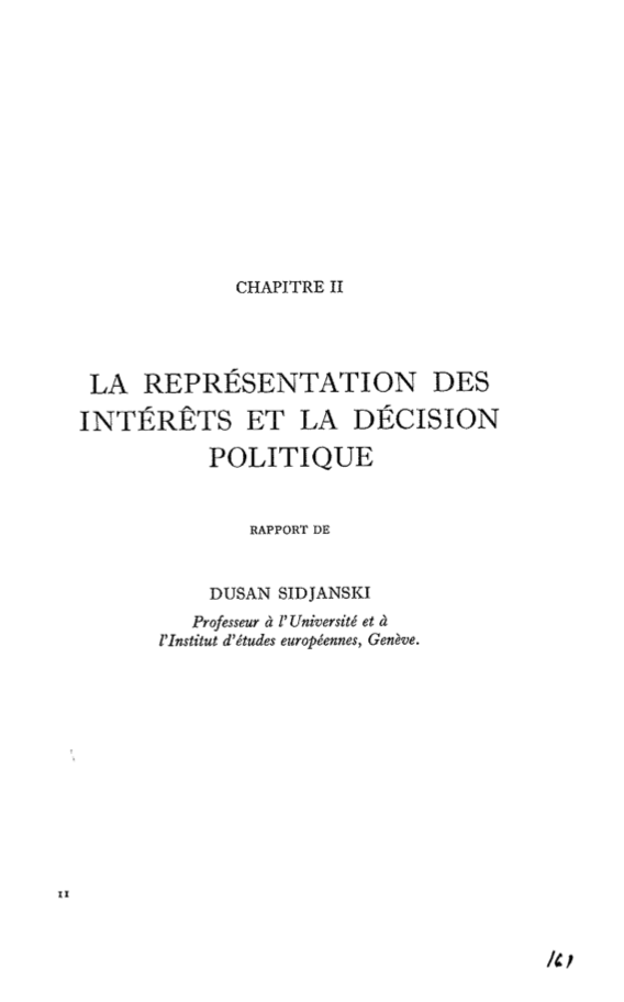 « La représentation des intérêts et la décision politique » , in MOULIN, L. (dir.), L'Europe de demain et ses responsables, Bruges, De Tempel, 1967, pp. 161-194.